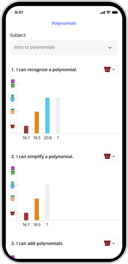 “I can recognize a polynomial.” → “I can simplify it.” → “I can apply it in context.”